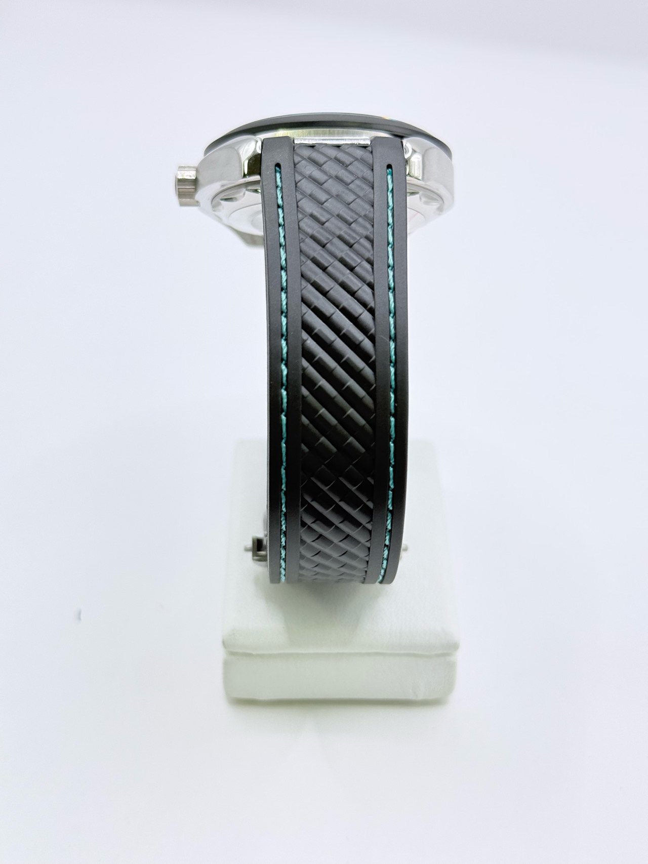 터콰이즈 그라데이션 다이얼과 매트 블랙 세라믹 베젤